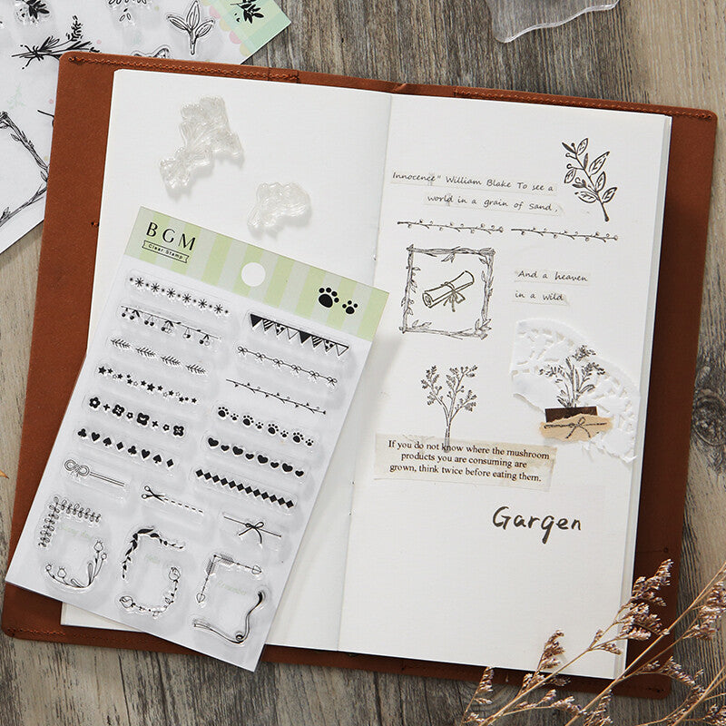 Easily create borders and add a touch of elegance to your notebook with these decorative line clear stamps.
