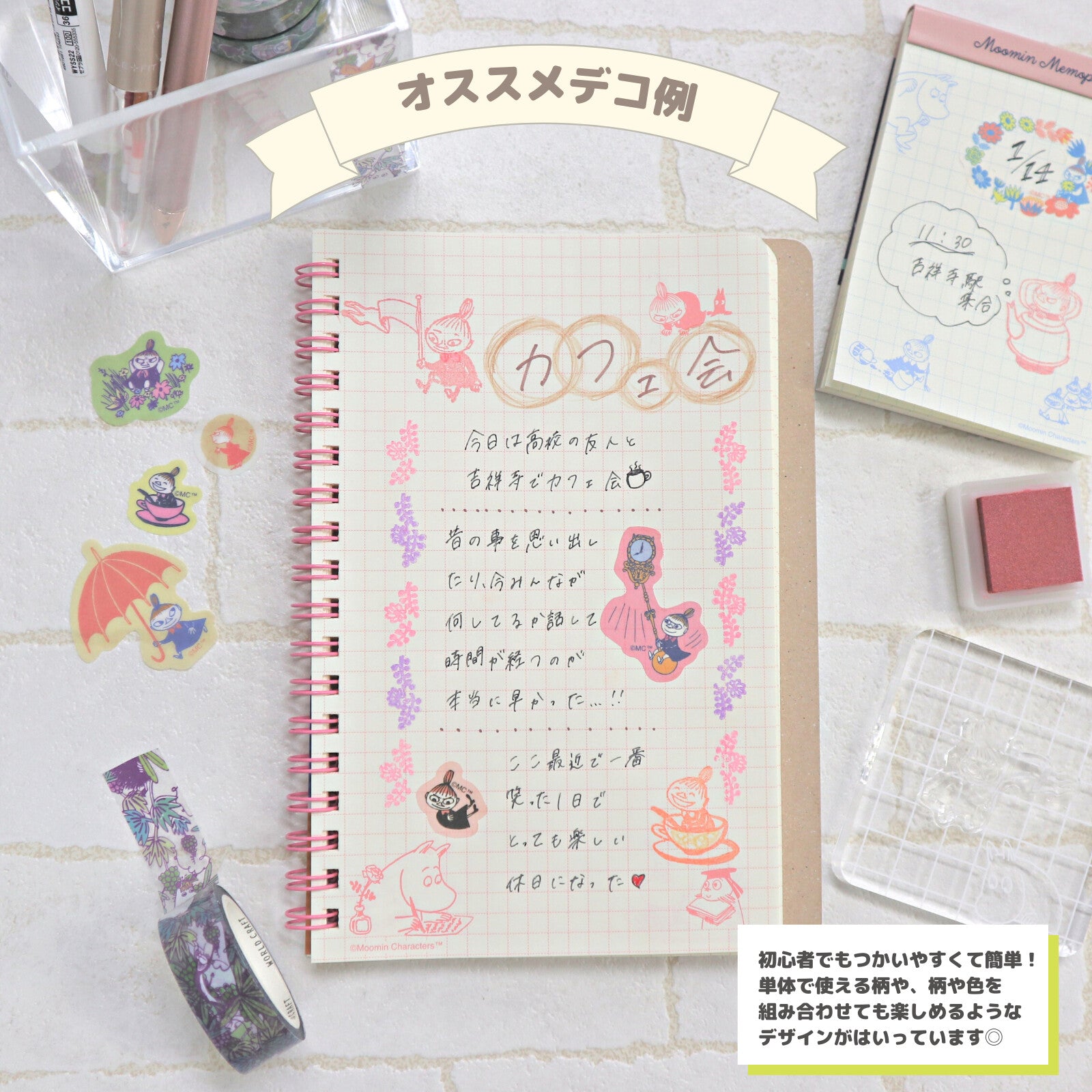 This new Moomin clear stamp collection features convenient clear resin stamps that can easily be aligned with an acrylic stamp block.